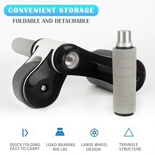 【REMOVABLE AND FOLDABLE COMPACT DESIGN】Our ab roller handles are easily removed, just screwing in or out. And the front wheels can be folded for compactness and portability (the folded size is about 8×5.5 inches), so you can exercise at home, office, and travel, providing long-lasting support for your fitness program.