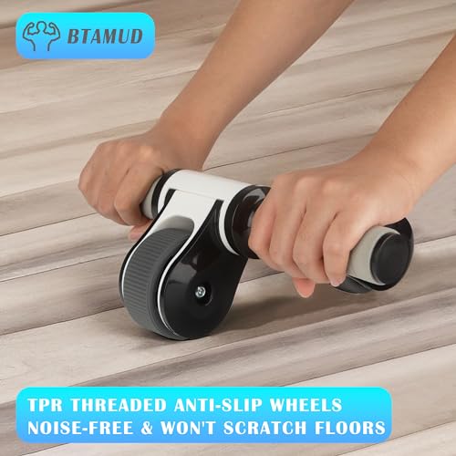 【HIGH QUALITY Abs Roller Wheel】BTAMUD abdominal exercise wheel made of high quality ABS materials with triangular design, providing excellent balance, strong stability and support during doing abdominal exercise. Equipped with 2 wrapping soft TPR rubber material wheel and a knee pad, it is anti-slip and noise-free during abs exercise at home and office floor, and will not hurt and scratch the floor. Meanwhile it is easier to control than other common core strength training wheels.